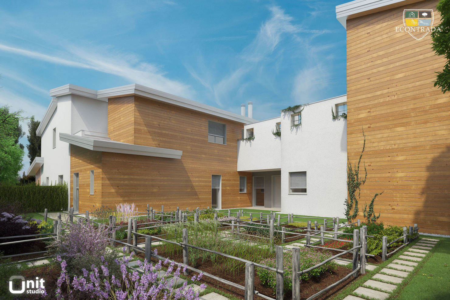 Грядки могут соседствовать с мощёными дорожками и газонами, создавая не только полезное, но и очень красивое пространство. Такой подход стирает границы между декоративным садом и хозяйственной зоной.