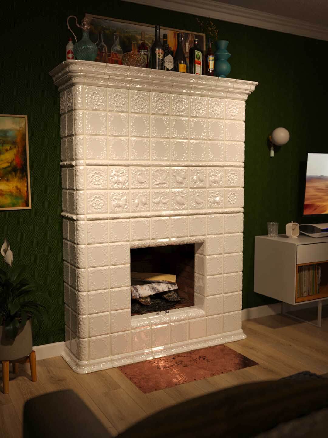Эта квартира площадью 162 квадратных метра поражает своим фантастическим ощущением простора и света. Ключевую роль в создании этой атмосферы играют высокие потолки — около 3,5 метров, которые визуально расширяют пространство и наполняют его воздухом. Особого внимания заслуживают гостиная и столовая, где помимо эстетики, важную функциональную и декоративную роль выполняют изразцовые печи. Они не только создают уют, но и становятся архитектурными акцентами, связывающими современный дизайн с традициями.