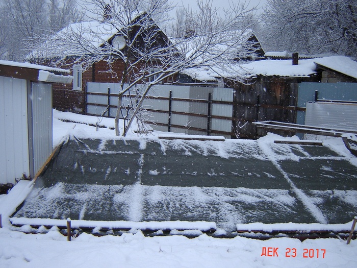 Первую зиму не получилось у нас что то вырастить в теплице и я ее просто остановил зимой. Т. е. не включал подогрев, освещение и крыша теплицы была просто закрыта тентом.