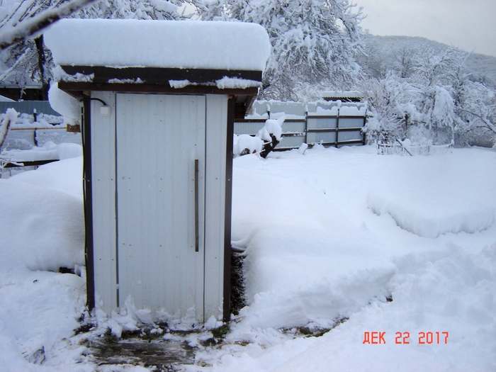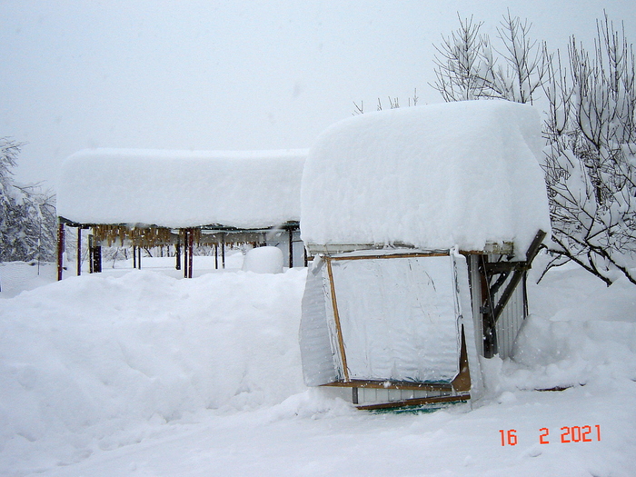 Хоть здесь и не Заполярье, но в условиях предгорья снега бывают просто " сумасшедшие". И пару раз за зиму обязательно приходится вставать ночью чистить снег с крыши теплицы, если случается по ночам сильный снег.